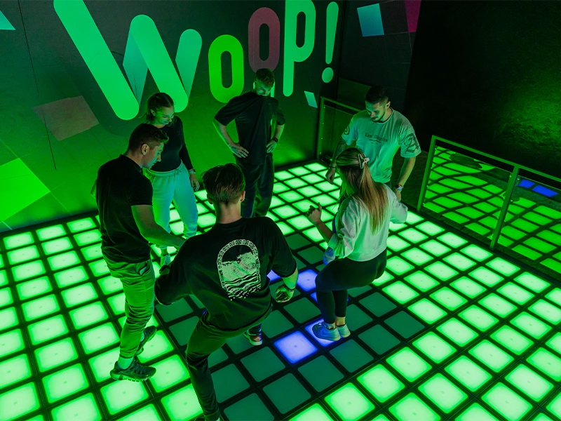 WOOP! Pixel bringt dich mit 10 verschiedenen Games an deine Grenzen. Ob Farb-Speedruns, Memory oder verrückte Team-Challenges – hier zählen Reaktion, Koordination und Teamgeist. Tritt auf die leuchtenden Felder, weiche den roten Kacheln aus und folge den Anweisungen am Screen – jede Runde ist anders, jede Runde ist Action pur.